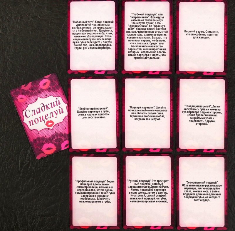 За время игры вы ответите на интимные вопросы, освоите разные способы поцелуев, выполните пикантные задания, поиграете в ролевые игры… Словом, вас ожидает то, о чём вы даже не мечтали!