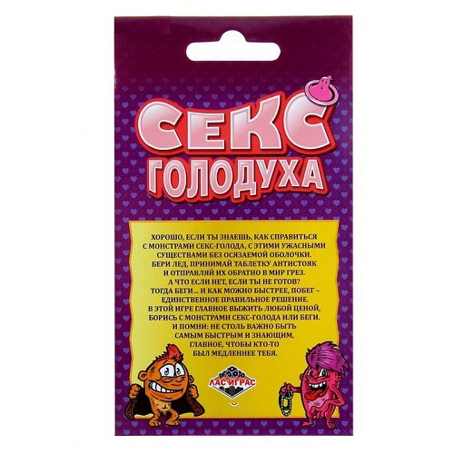 Играйте вдвоем или небольшой компанией до 5 человек. Карточки с разным значением и заданиями помогут вам побороть секс-монстров и скорее сбежать от этого ужаса. У вас есть 3 раунда, чтобы собрать больше всего очков «побега» и стать героем секс-апокалипсиса.