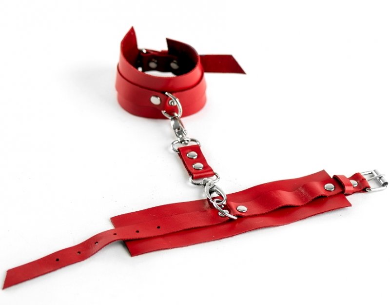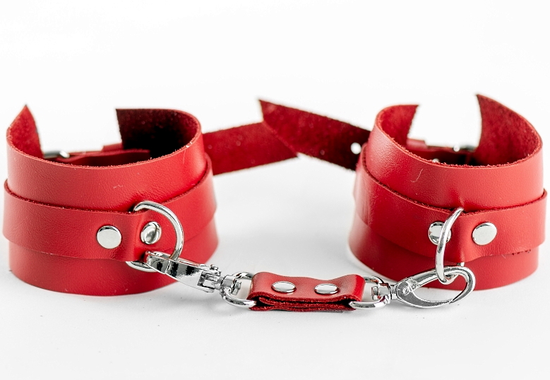 Изящные и, в то же время, дерзкие наручники, выполненные из натуральной кожи красного цвета.