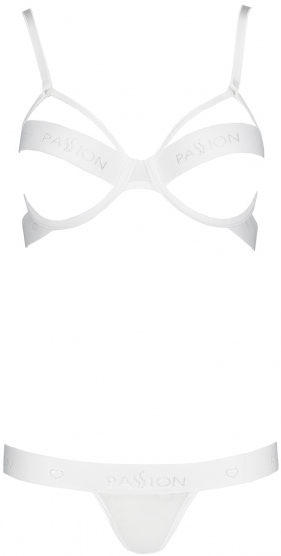 Белый комплект нижнего белья Kyouka выполнен из полупрозрачной сеточки и эластичных стрэп-лент с фирменным логотипом!