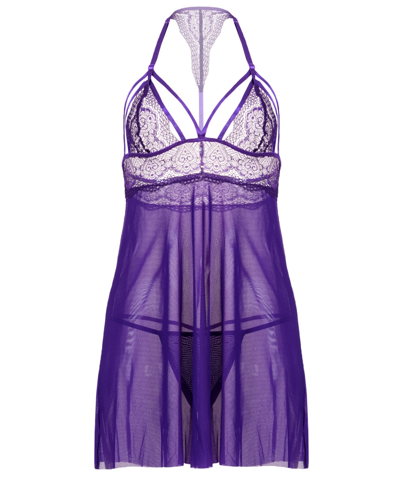 Изящный бэби-долл Candy Girl Nevaeh из мягкой эластичной сетки с кружевным лифом мягко струится по фигуре и визуально акцентирует внимание на груди.