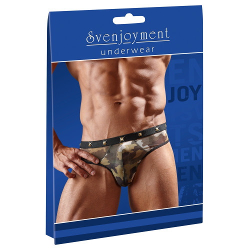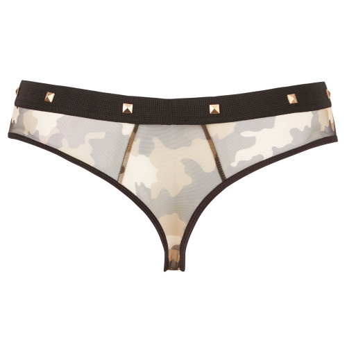 Фирменные камуфляжные стринги на широкой комфортной резинке украшенные металлическими заклепками, они отлично сядут по фигуре!