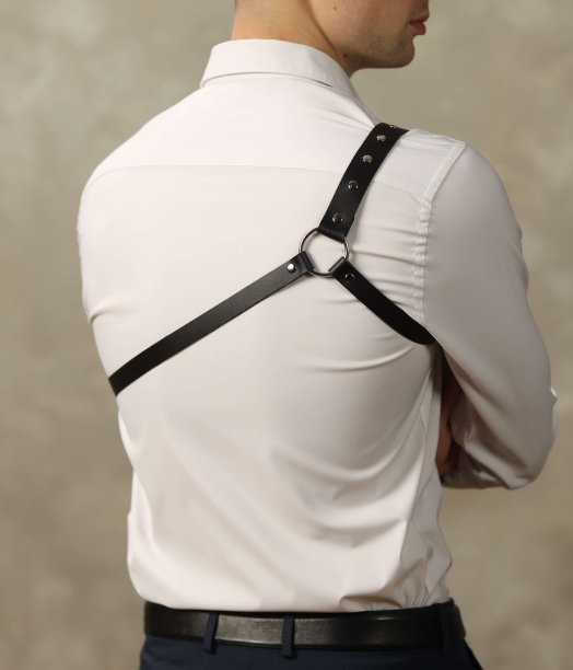 Классическая мужская БДСМ сбруя через одно плечо, выполненная полностью из натуральной кожи, поможет разнообразить Ваш совместный вечер и воплотить все тайные желания в реальность!