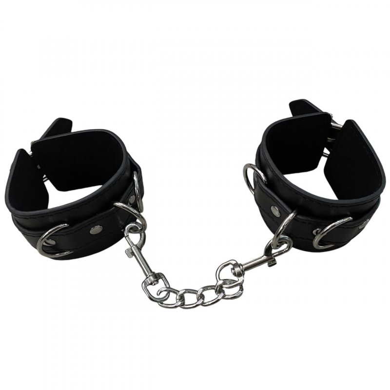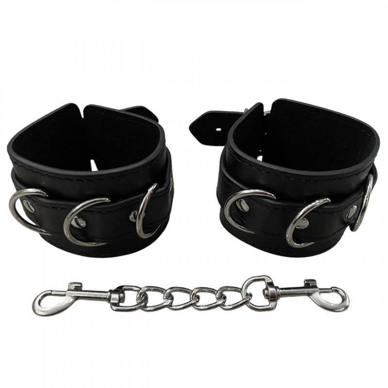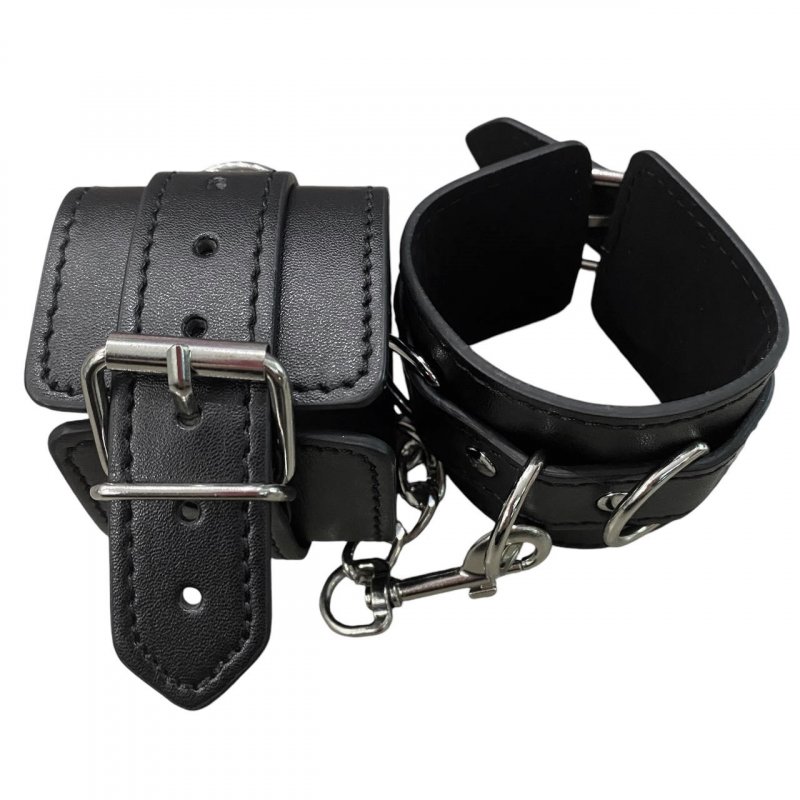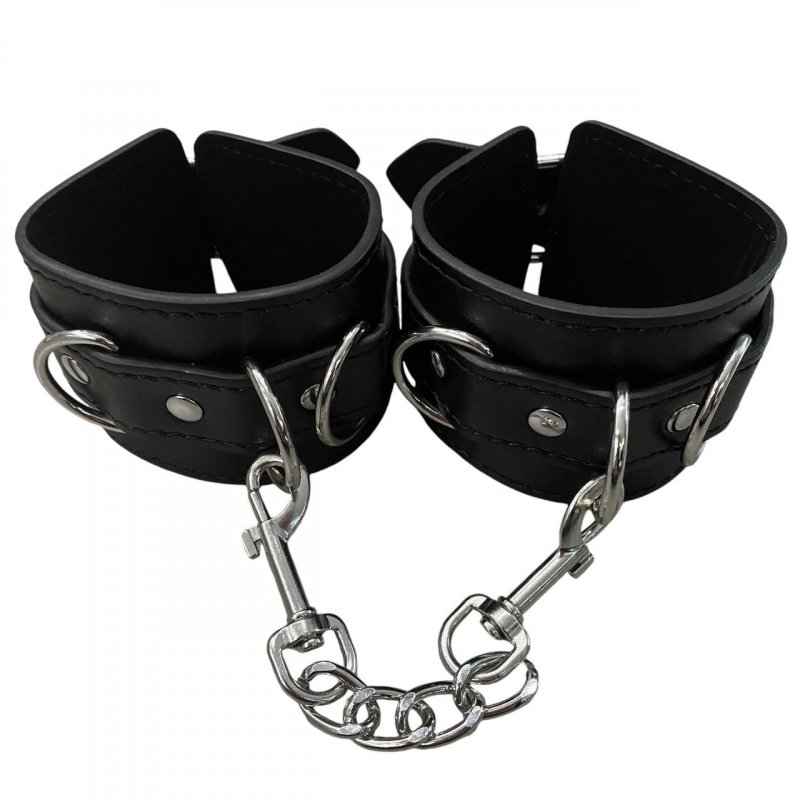 В комплект входят: 2 наручника, цепочка с карабинами.