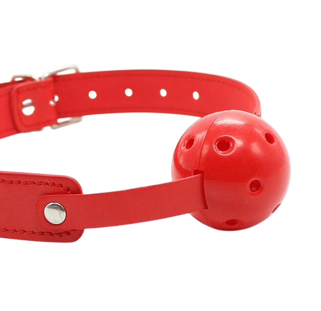 Кляп-шар имеет универсальный размер, который удобно регулируется при помощи пряжки, а специальные дырочки в шаре облегчают дыхание и обеспечивают полный комфорт.