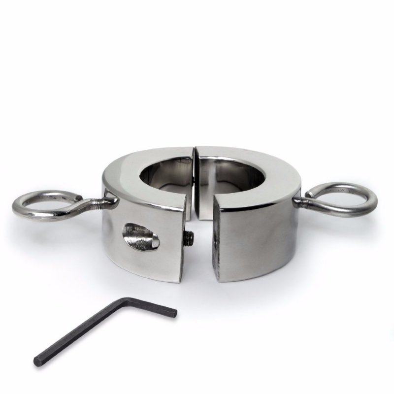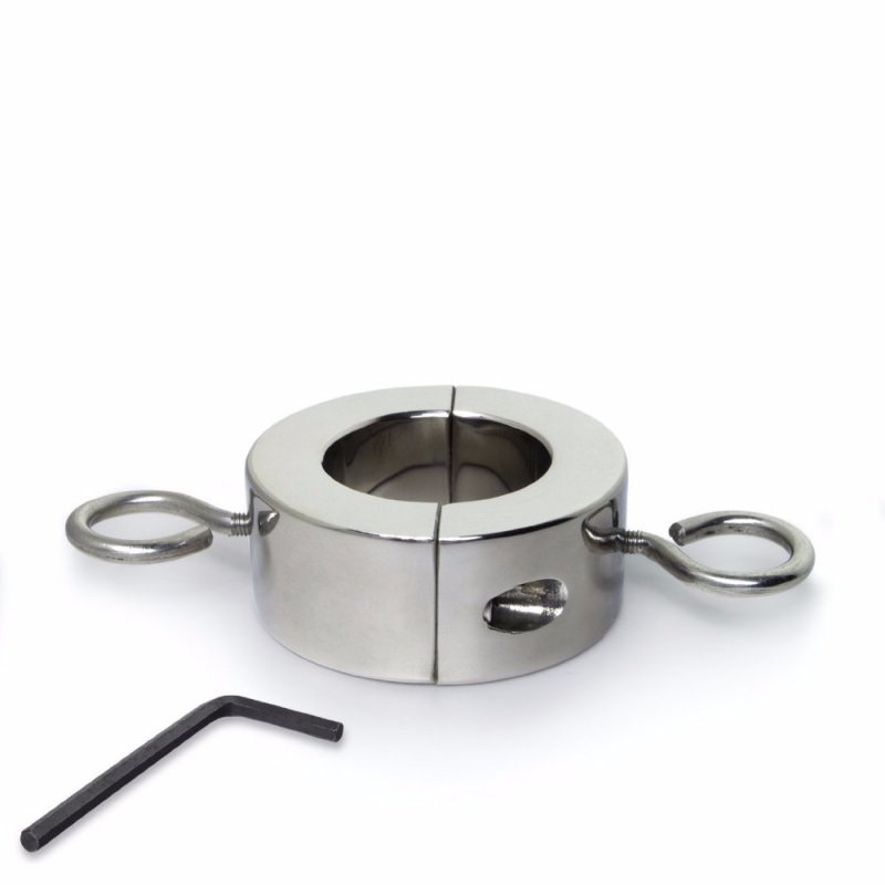 Для подобного рода тренировок используется болстретчер (дословно растяжитель мошонки). Кольцо состоит из двух половин толщиной 25 мм, которые соединяются двумя двухсантиметровыми болтами. Петли по бокам вкручиваются в кольцо и служат держателями для грузиков.