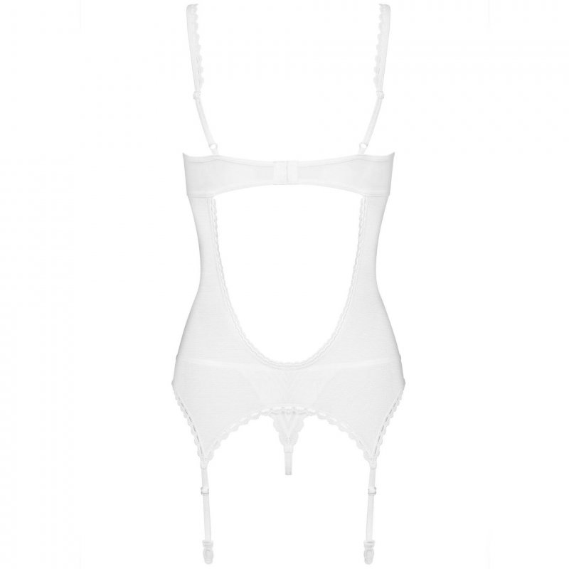 Изящный и откровенный комплект из корсета с пажами для чулок и трусиков-стринги белого цвета!