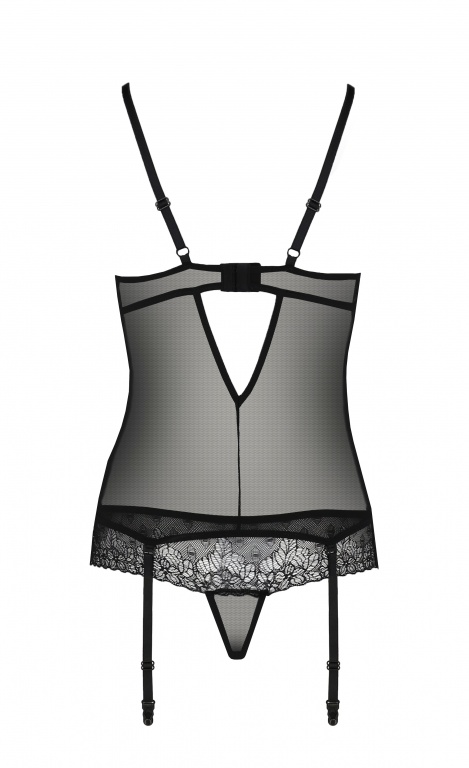 Эротический полупрозрачный корсет с подвязками для чулок и трусики черного цвета!