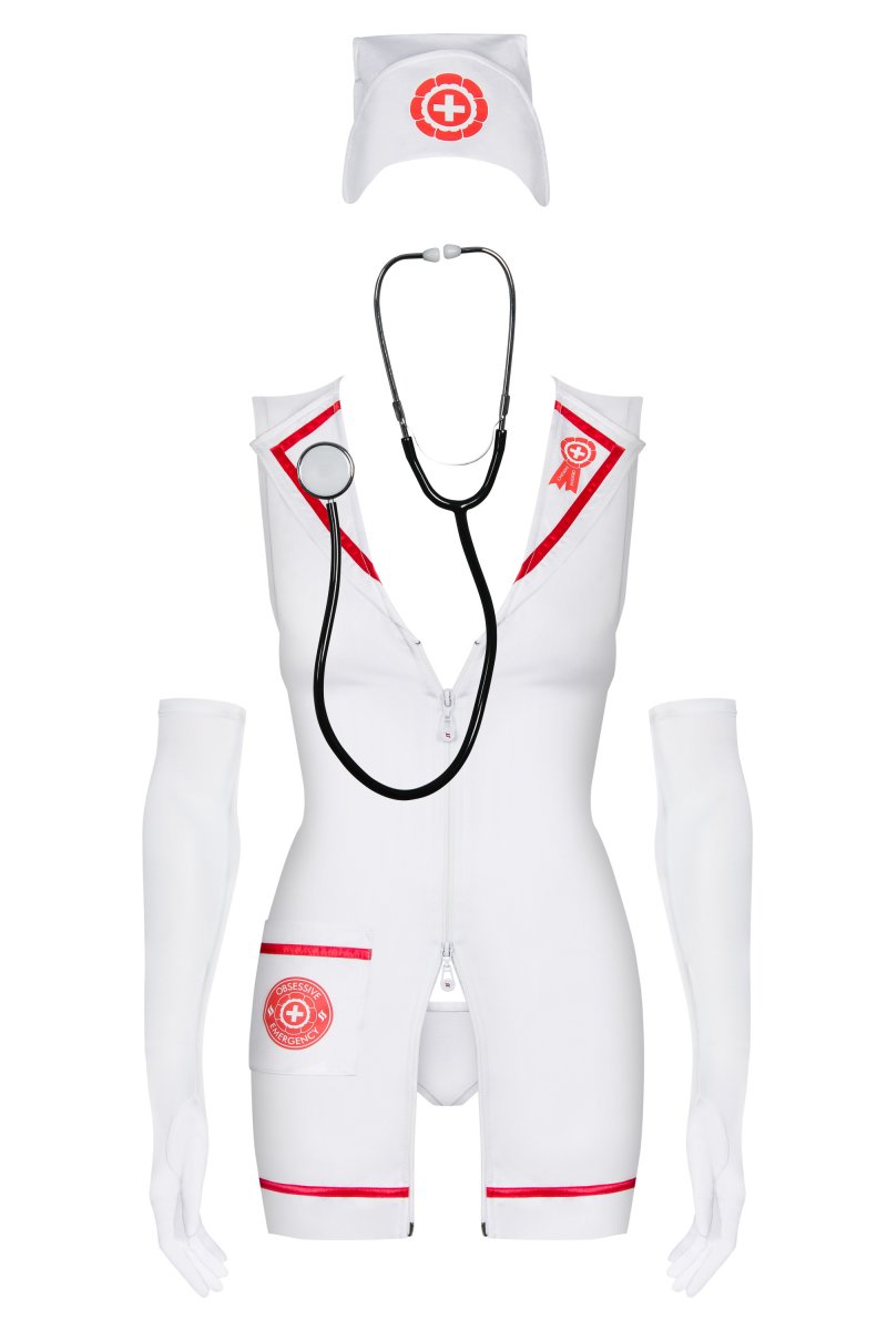 В комплект входят: платье, стринги, перчатки, чепчик, стетоскоп.