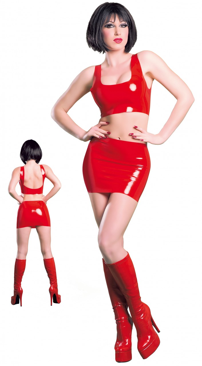 Красная мини-юбка — классическая модель, которая украсит любой эротический образ.