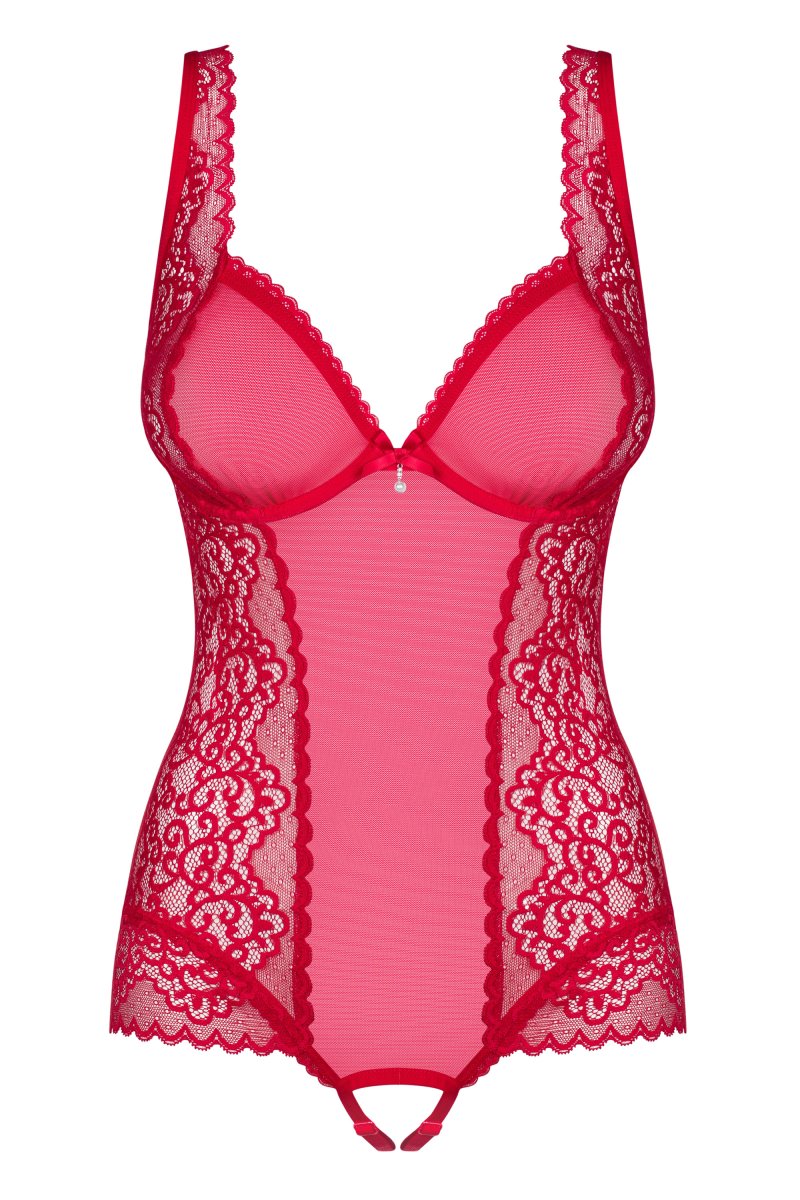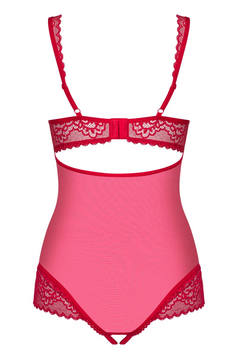Детали: сексуальное, красное боди выполнено из прозрачной сетки и кружева, регулируемые бретели и бретели в промежности, чашки на косточках - идеально подчеркнутая грудь, многоступенчатая застежка - идеальная посадка, эффектный вырез на спинке, открытая промежность, милый кулон с кристаллами и жемчугом, красивая и эластичная ткань.