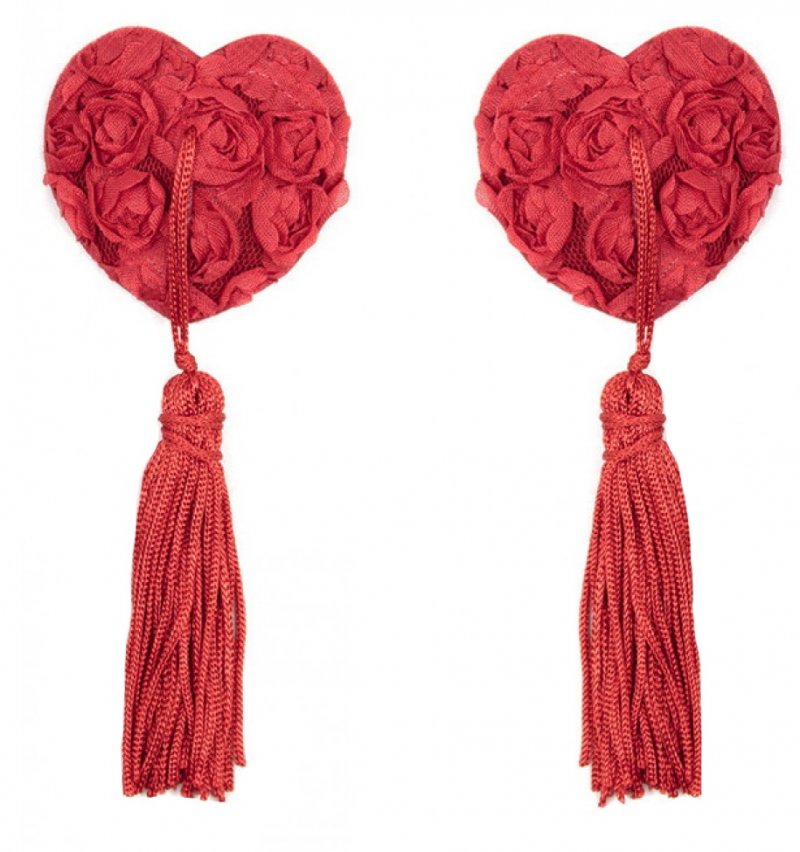 Красные пэстисы в форме сердца, украшенные маленькими розочками, подойдут для придания женственности и игривости!