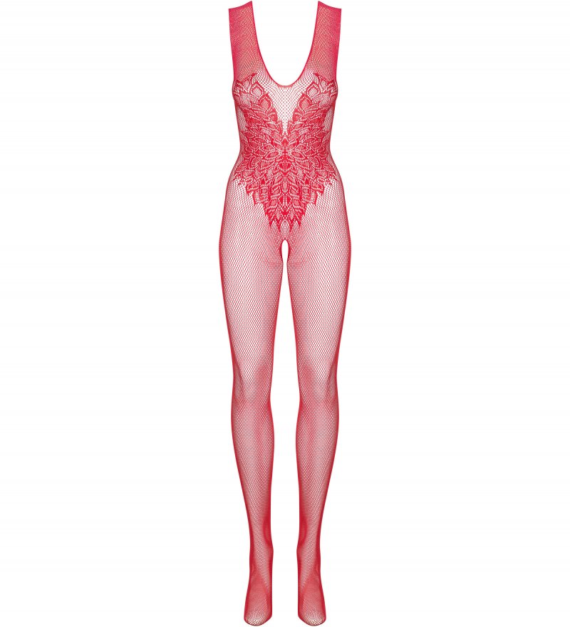 соблазнительный красный кэтсьюит в мелкую сеточку с пикантным вырезом!