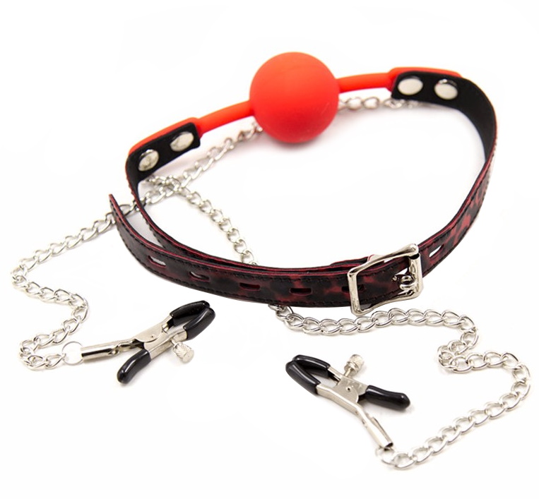 Кляп невозможно выплюнуть, он надежно фиксируется при помощи ремешка, который регулируется с помощью пряжки и фиксируется замочком.