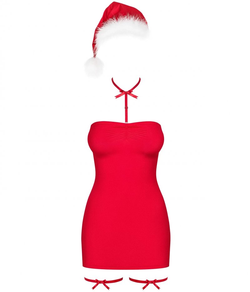 Комплект Kissmas, состоящий из платья, чокера, подвязок и шапочки Санты –