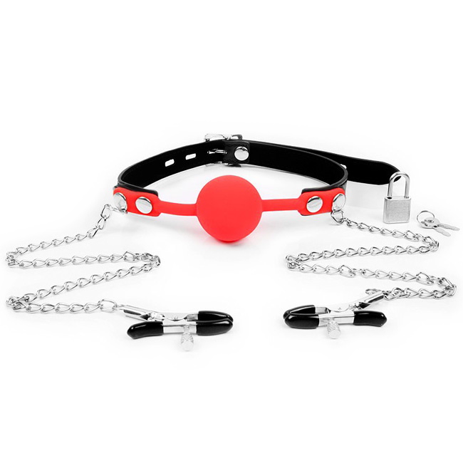 Кляп невозможно выплюнуть, он надежно фиксируется при помощи ремешка, который регулируется с помощью пряжки и фиксируется замочком.