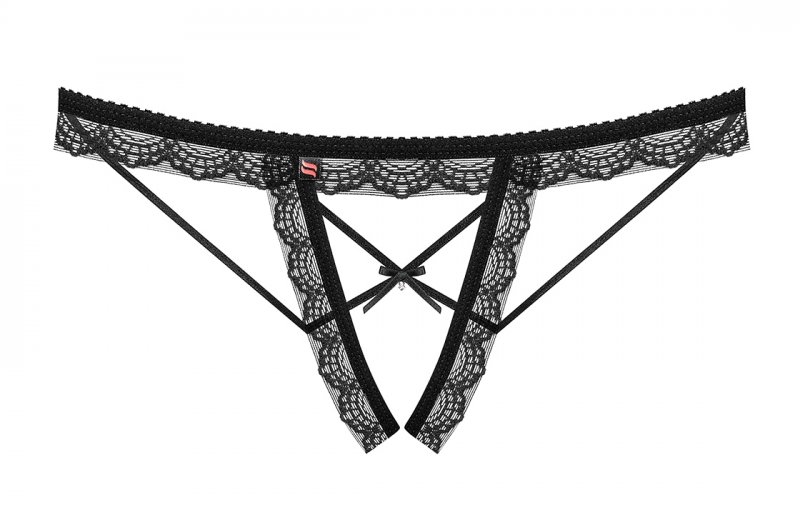 Сексуальные трусики с пикантной открытой промежностью, уникальное сочетание полос и кружева, бантик и миниатюрная безделушка спереди - максимум женственности, кружево с красивым рисунком на ягодицах, нежная эластичная ткань.