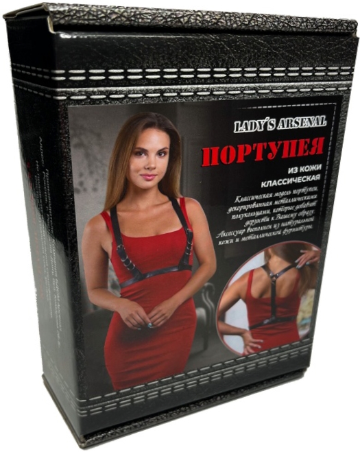 модель портупеи декорирована металлическими полукольцами, которые добавят