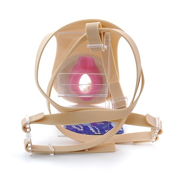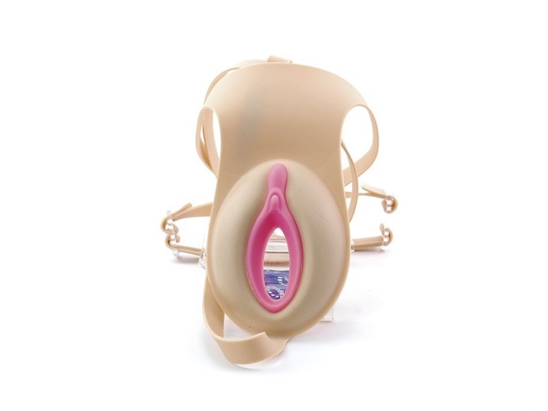 «Pussy» Strap-on сделан из медицинского силикона, имеет розовые от возбуждения половые губы и набухший клитор.