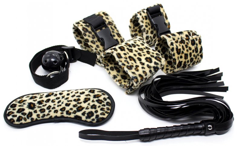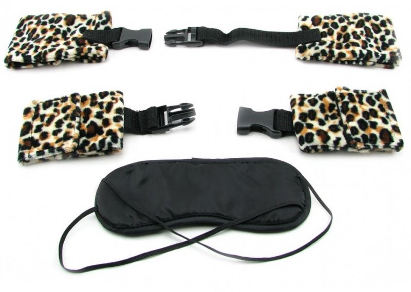- плюшевые леопардовые наручники и поножи на липучках помогут приковать Вашего партнера