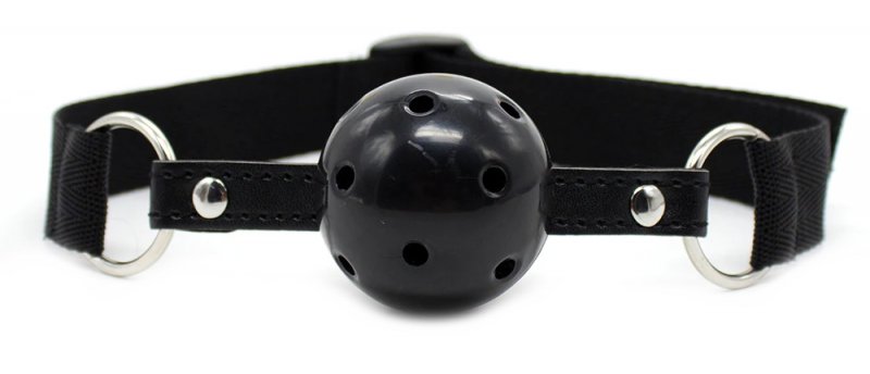 - пластиковый дышащий кляп-шар комфортный для ношения и не доставит дискомфорта во время игры