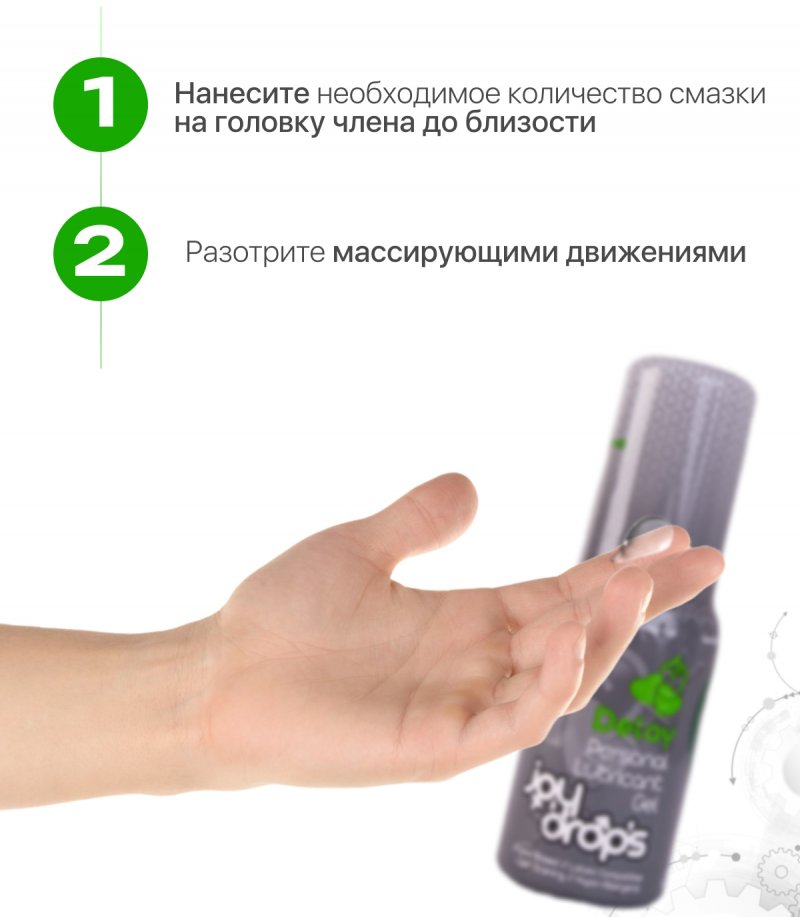 Применение: нанесите необходимое количество смазки на головку полового органа и разотрите массирующими движениями до сексуальной активности.