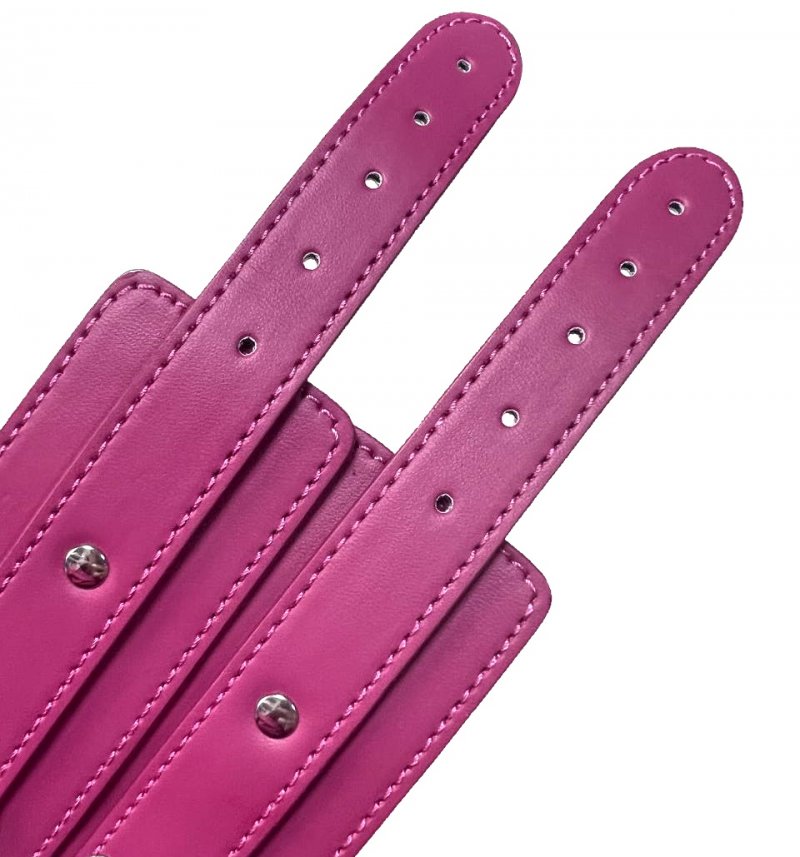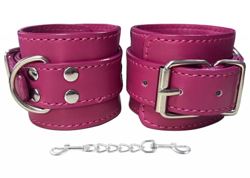 Металлическая фурнитура обеспечивает качественную фиксацию. Наручники соединяются между собой цепью с карабинами, благодаря чему обеспечивается достаточно жесткая сцепка.