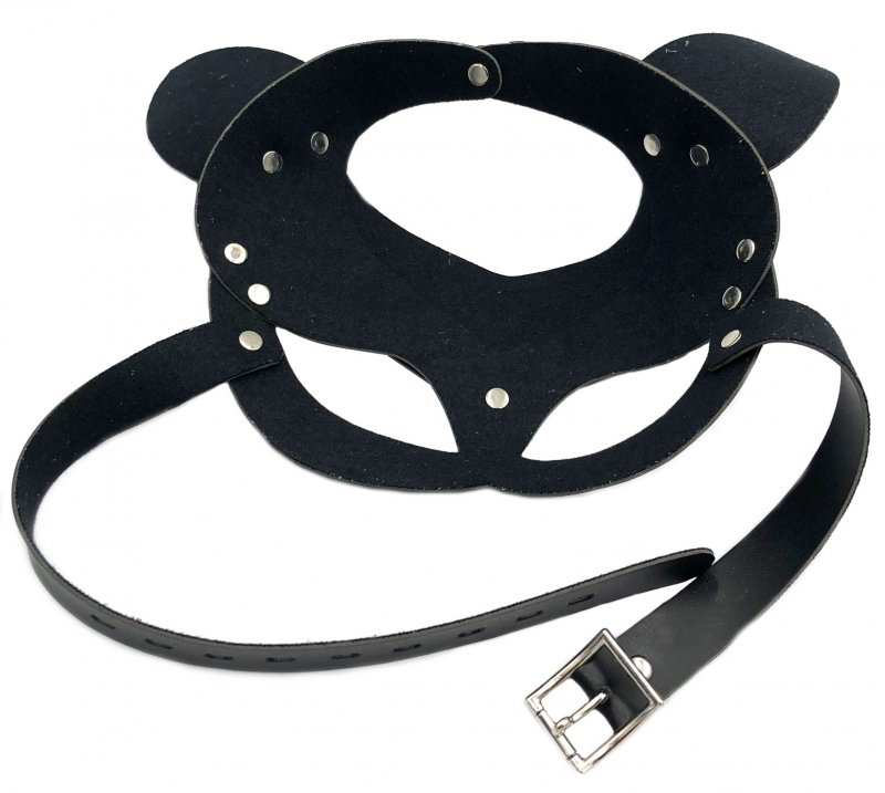 Выполнена из качественной экокожи черного цвета, благодаря чему великолепно держит свою форму. Крупные вырезы для глаз обеспечат прекрасный обзор и комфортное пребывание в образе.