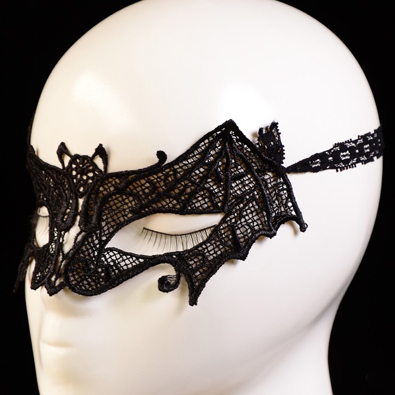 Маска изготовлена из плотного ажурного кружева черного цвета.