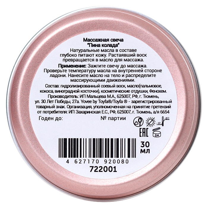 Массажная свеча ''Массажный коктейль'', в составе которой только натуральные масла, глубоко питает и увлажняет кожу.