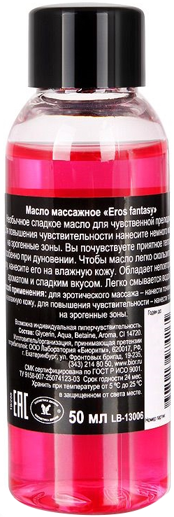 Массажное масло "Eros Exotic" - идеальное средство для эротического массажа с великолепным ароматом земляники!