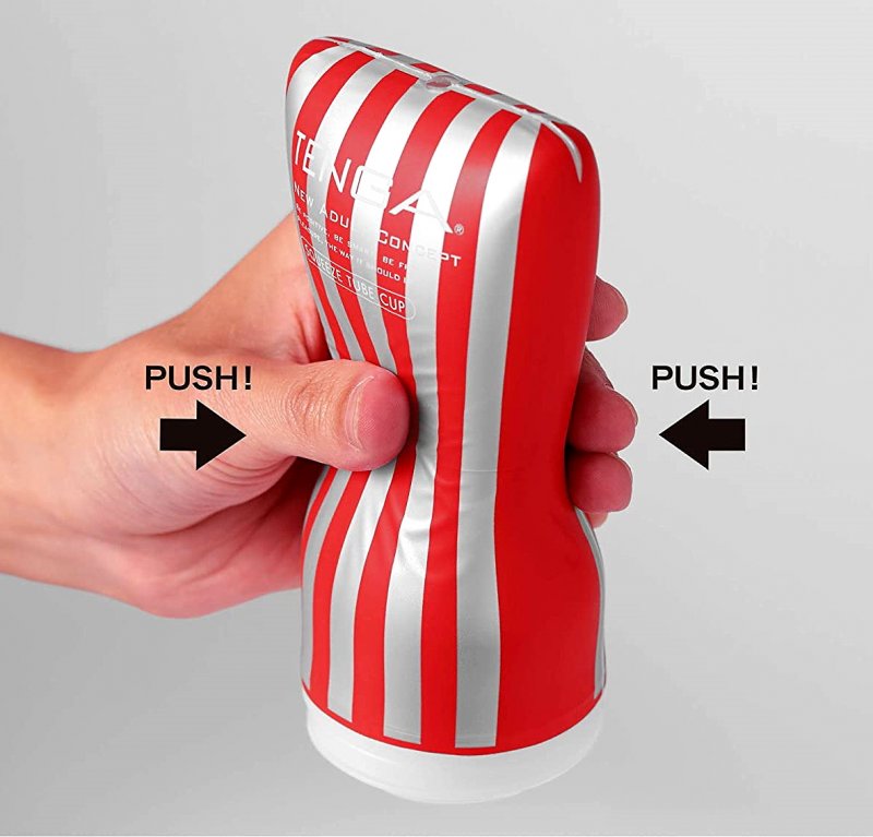 Клапан воздуха может оставаться открытым или закрытым; кончиками пальцев вы можете регулировать специальное отверстие для воздуха, что позволит пенису испытать приятное ощущение посасывания. А после фантастического семяизвержения, можете попробовать настоящий шик — не просто снять мастурбатор, а «выдавить», «выжать» пенис из него.