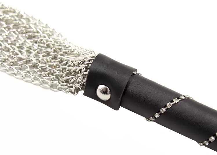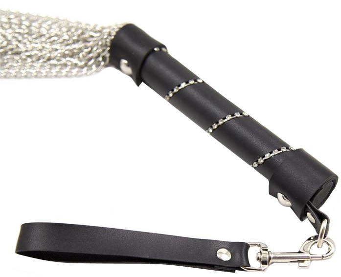 Металлическая плеть имеет необычный дизайн - ее ручка выполнена и искусственной кожи и декорирована стразами - очень стильно!