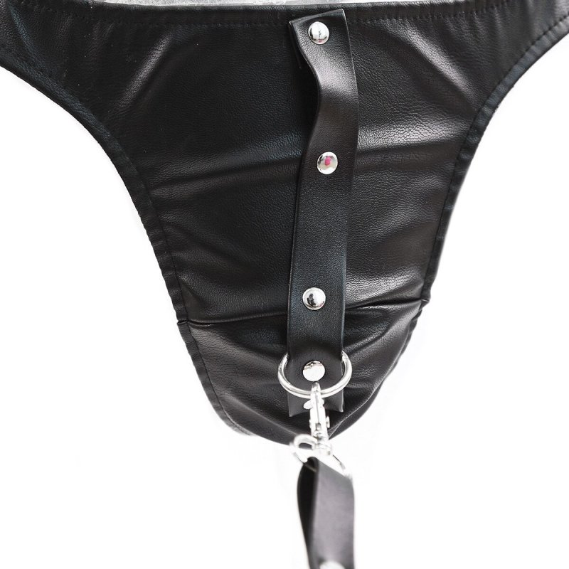 Дерзкая модель сексуально подчеркивает бедра и имеет поводок на металлической цепочке. Теперь Ваш партнер всегда будет на привязи и Вы сможете взять процесс прелюдии в свои руки!