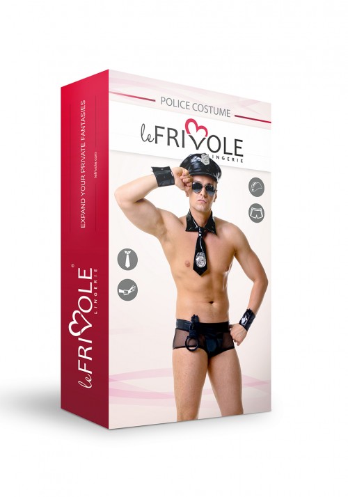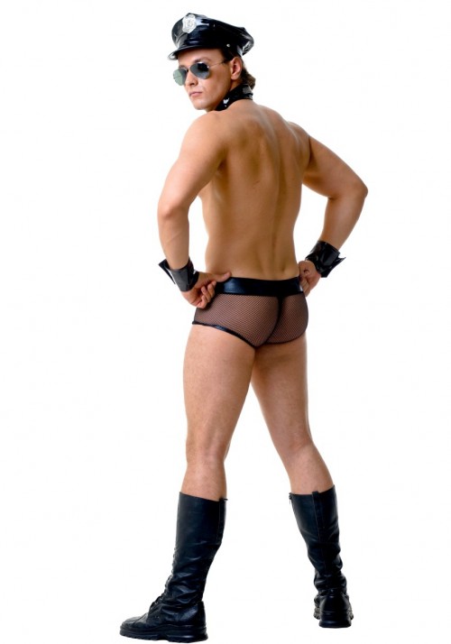 Галстук, фуражка и манжеты с полицейским значком придают образу маскулинность. Костюм идеально подойдет для эротических игр на разные тематики. Находясь в обществе такого полицейского, остается только следовать закону.