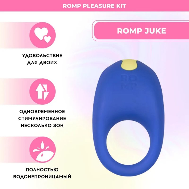 Romp Juke – эрекционное виброкольцо, оно подойдет парам, желающим разнообразить свои отношения и усилить наслаждение от секса: с кольцом эрекция будет сильнее, а половой акт продлится дольше.