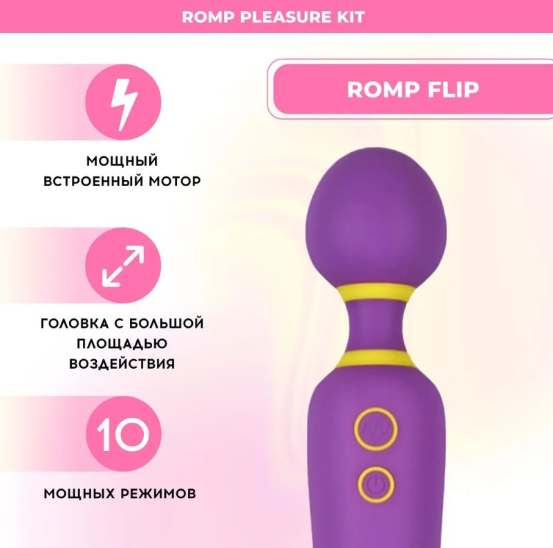 Romp Flip – универсальный вибромассажер с покрытием из нежного силикона для стимуляции наружных эрогенных зон.