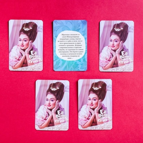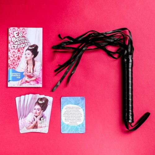 В наборе: 5 карточек;парик; плётка; веер; сценарии ролевых игр.