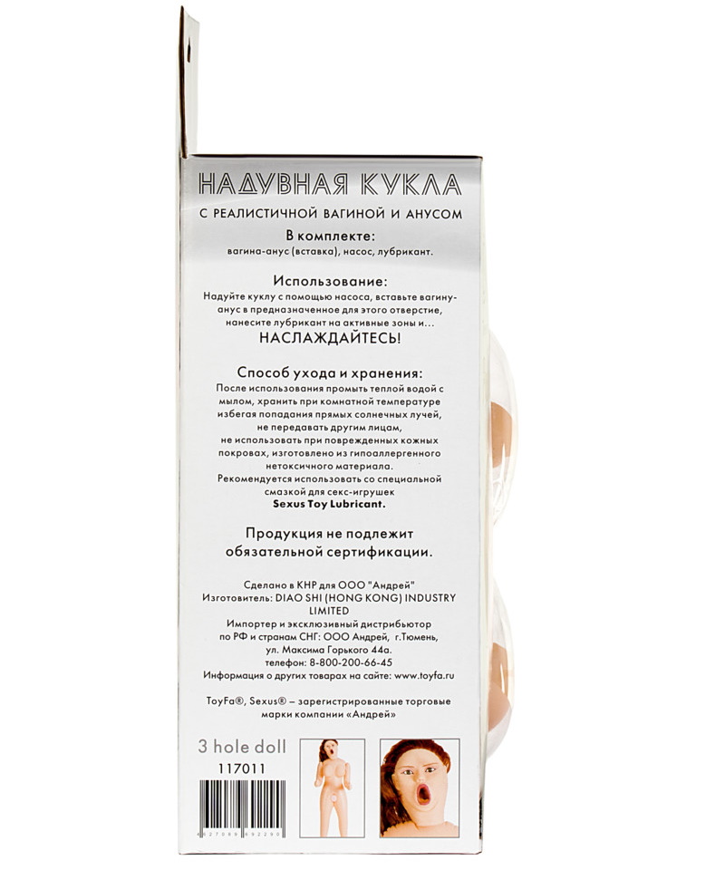 У куклы имеется реалистичная вставка в виде «тоннеля», выполненная из кибер-кожи.
