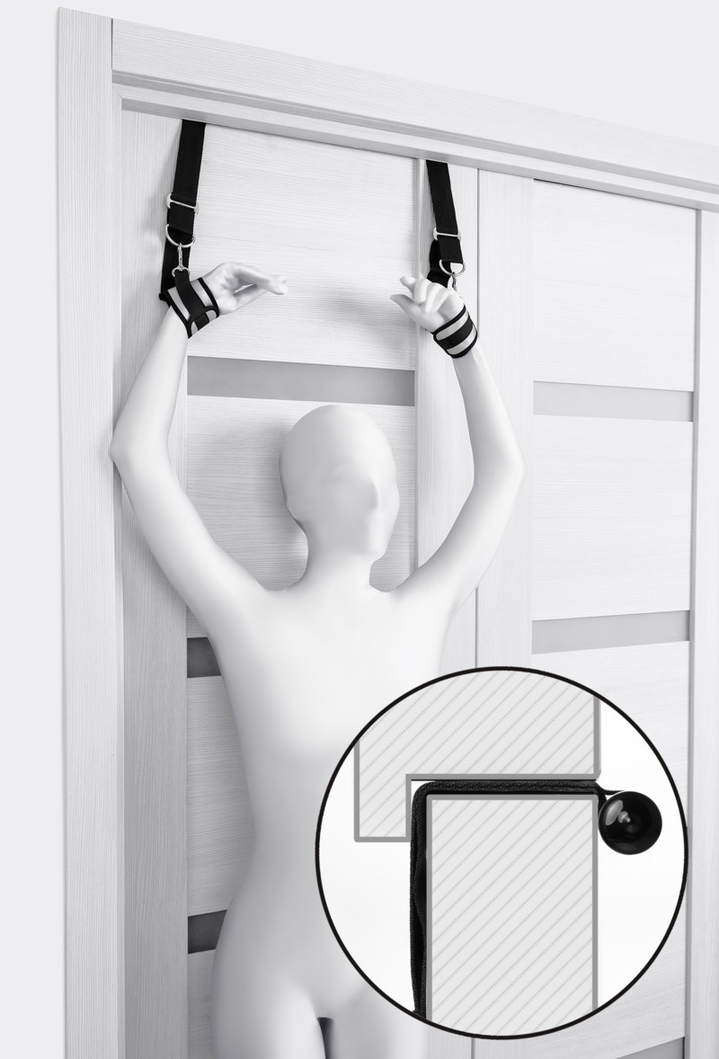 Фиксаторы с креплением к двери дают вам больше свободы для реализации фантазий. Не нужно напрягаться, чтобы удерживать руки вверху, не нужно контролировать своего партнера, если хочется удержать его стоя.