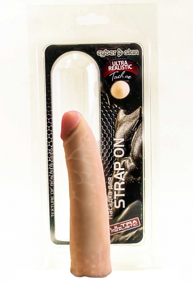 Насадка для страпона сделана из приятной на ощупь киберкожи.