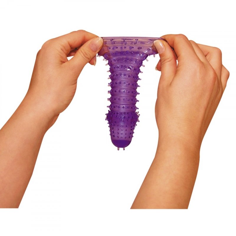 Сделана из фиолетово геля, очень гибкая, поэтому подойдет по размеру любому члену или вибратору.