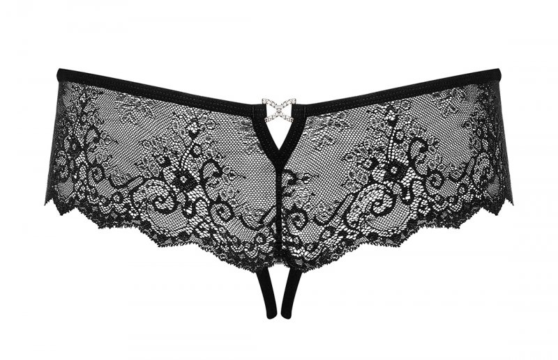 Детали: широкое кружево с нежным цветочным узором, резинки создают пикантную открытую промежность, шов между ягодицами соблазнительно подчеркивает формы, мерцающий декор на ягодицах (NickelFree - без никеля), деликатные эластичные ткани.