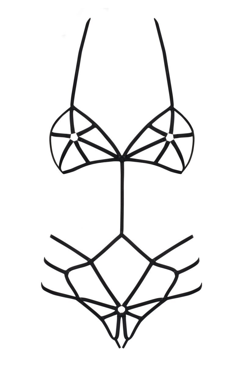 Детали: сеть из мягких и эластичных полос создает сексуальный наряд, завязки на шее и спине - для комфорта и идеальной посадки, открытая промежность, не содержит никель, приятная на ощупь эластичная ткань.