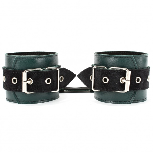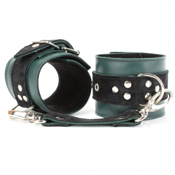 Оковы выполнены из натуральной кожи изумрудного цвета.