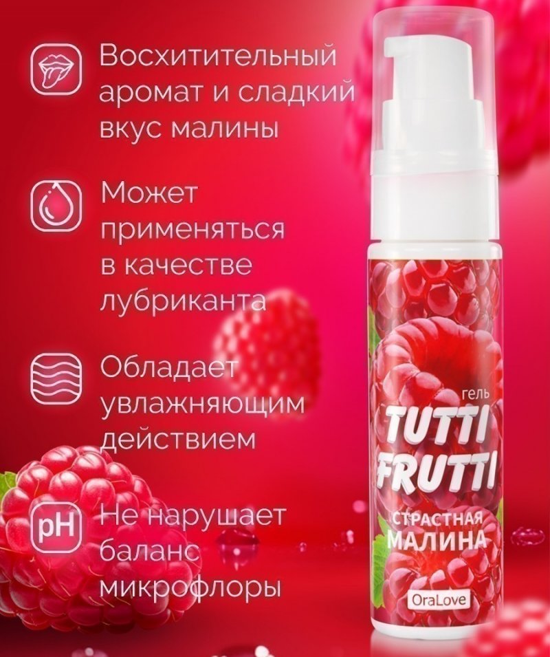 Оральный гель Tutti-Frutti со вкусом и ароматом малины придаст Вашим любовным ласкам особое удовольствие!