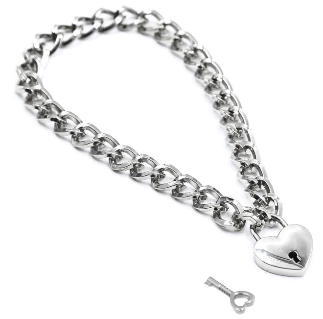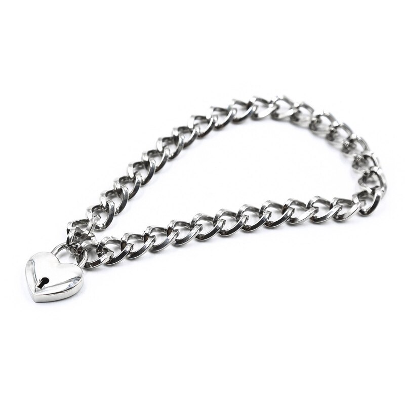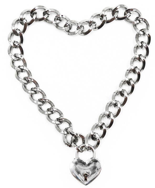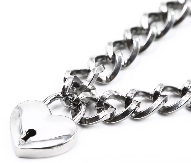 Аксессуар выполнен из металла и имеет вид классической цепи, но замочек-сердце добавляет ему особой дерзости.