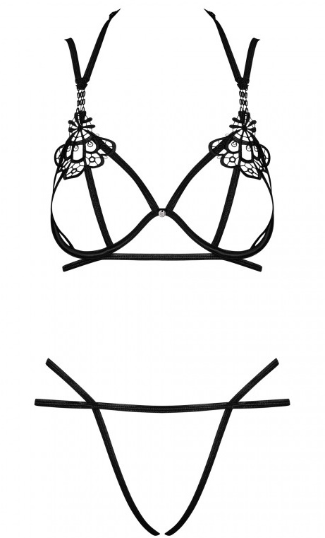 Детали сделают Ваш образ желанным: необычные полоски, оплетающие тело, уникальный крой, элегантный гипюр над грудью, многоступенчатая застежка, обеспечивающая идеальную посадку, открытый бюстгальтер на косточках.