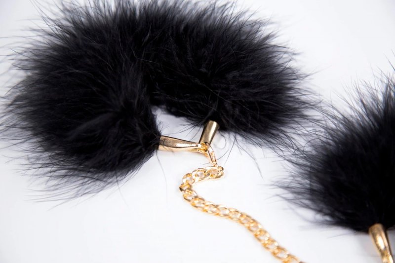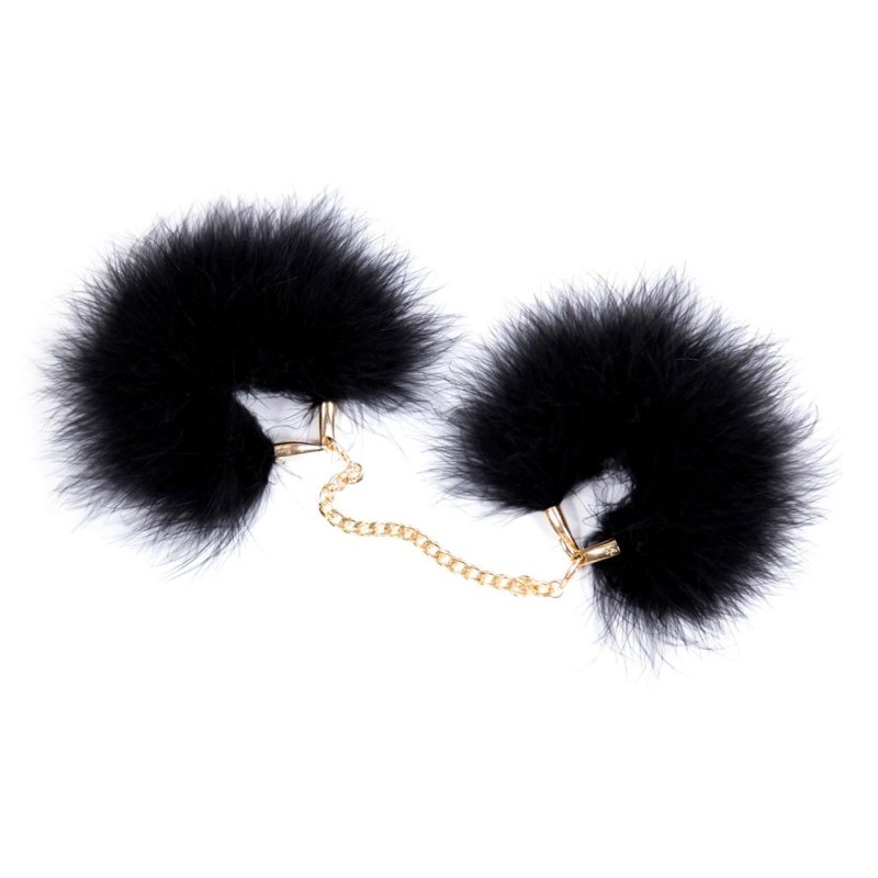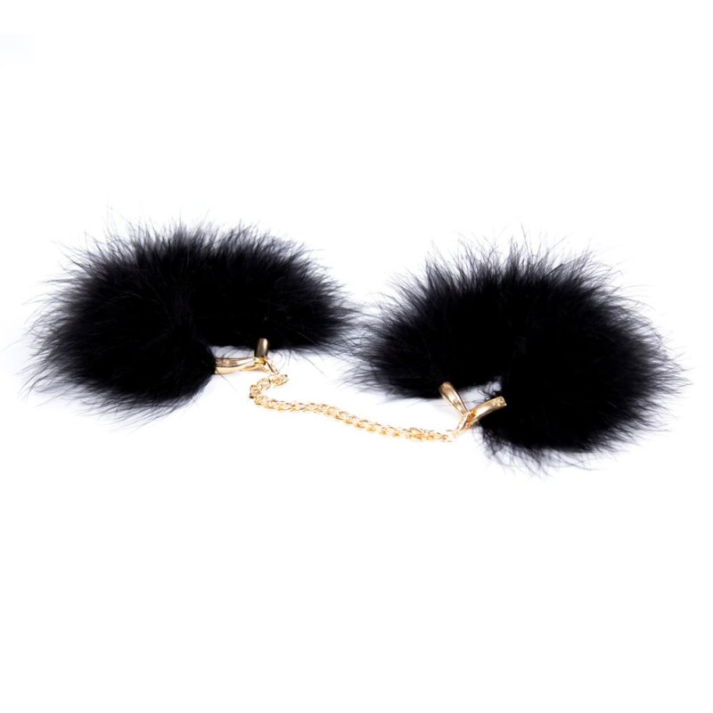 Наручники крепятся между собой с помощью золотой цепочки на карабинах.