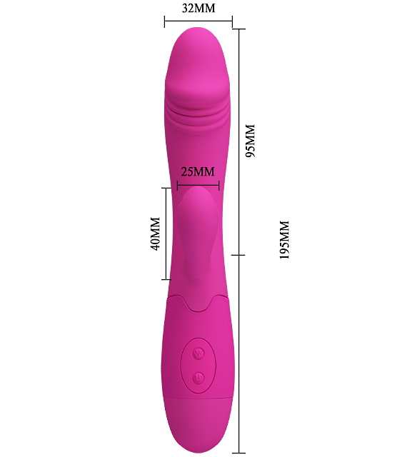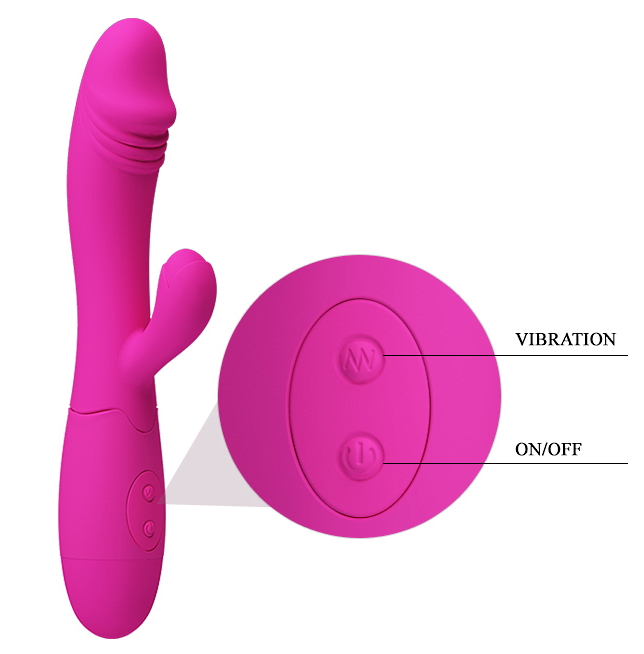 Вибратор снабжен двумя моторами: первый расположен в головке, второй - в отростке для стимуляции клитора.